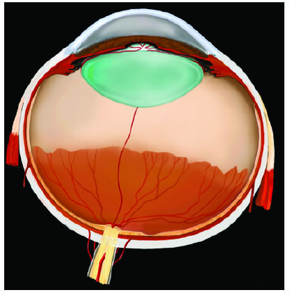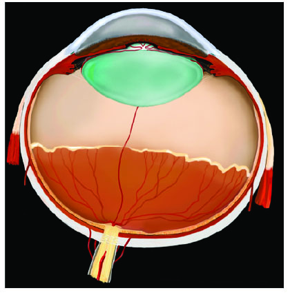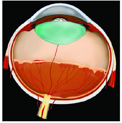 Removal of the vitreous tissue that fills the eye can relieve the traction which pulls the retina away from the wall of the eye.